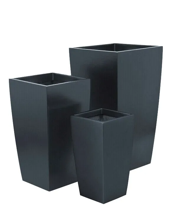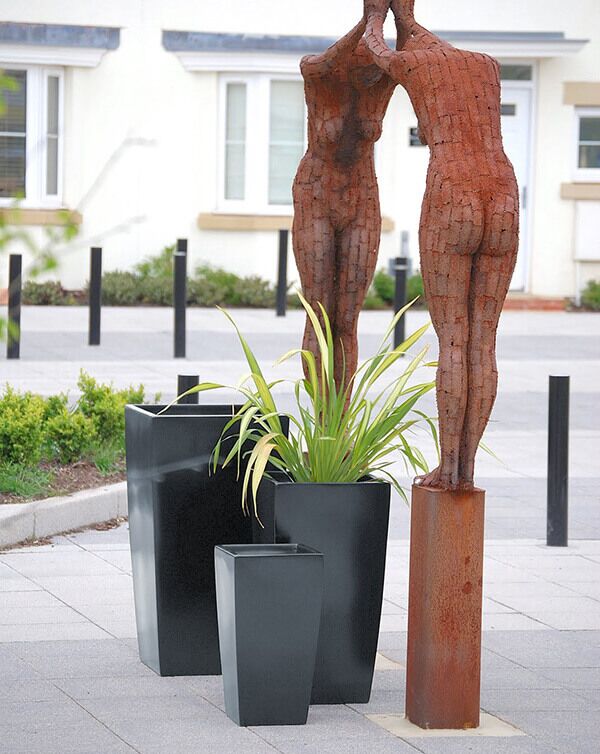 The Manhattan range offers some large sizes in these shapes at a fraction of the weight of planters in other materials. The tall taper is an elegant solution to frame a doorway or create impact at an entrance.