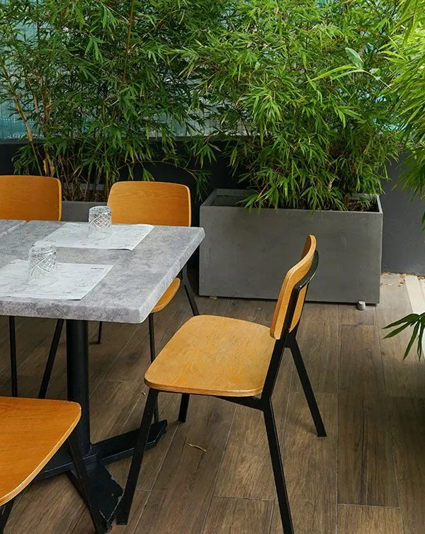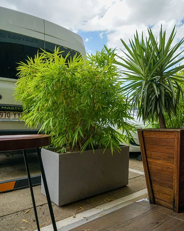 Finished with an industrial concrete paint the Milano Troughs are ideal for dividing spaces and creating boundaries between different areas. Repetition planting works well and strappy foliage plants and grasses work to great effect.